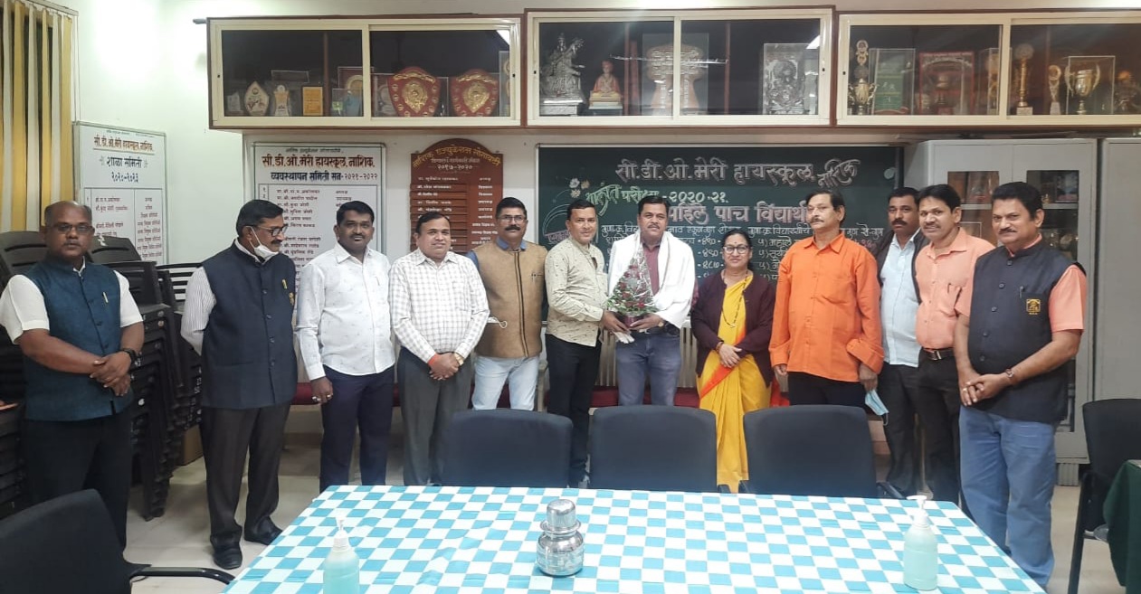 नाशिक एज्युकेशन सोसायटी संचलित सीडीओ-मेरी हायस्कूलमध्ये साहेबराव राठोड यांची शिक्षक प्रतिनिधीपदी बिनविरोध निवड झाल्याबद्दल पालक-शिक्षक संघातर्फे सत्कार करण्यात आला.