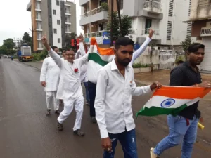 धम्मगिरी महाविद्यालयातर्फे ढोल-ताशांच्या गजरात पदयात्रा काढण्यात आली. विद्यार्थी तिरंगा ध्वज घेऊन सामील झाले होते. भारतमातेच्या जयजयकाराने परिसर दुमदुमून गेला होता. यावेळी वाद्याच्या तालावर सर्वांनीच नृत्य केले. मायको फोरम एम्प्लॉईजच्या सभागृहाजवळ पदयात्रेची सांगता झाली.