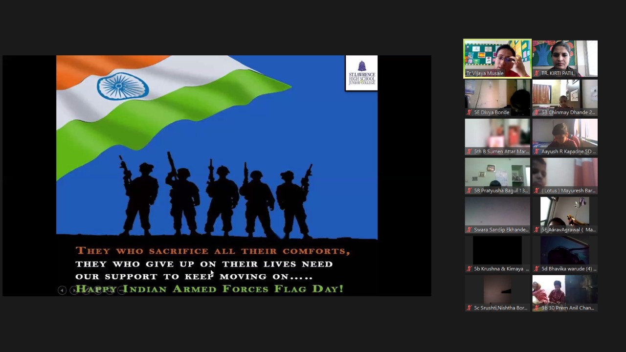 समाजशास्त्राच्या शिक्षिकांनी भारतीय ध्वजदिनाचा इतिहास व ध्वजाचे महत्त्व पीपीटीद्वारे विद्यार्थ्यांना समजावले. विद्यार्थ्यांमध्ये विविध मूल्य रुजवण्याचा हेतूने या शाळेत विविध मूल्यवर्धक उपक्रम राबवले जातात. विद्यार्थ्यांनीदेखील आम्ही सर्व भारताचे जबाबदार नागरिक म्हणून या उदात्त कार्यासाठी जवानांना सहकार्य करू, असा संकल्प केला व या कार्यक्रमाची सांगता करण्यात आली.