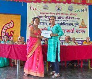महाराष्ट्र योगा असोसिएशन आयोजित राज्यस्तरीय योगासन स्पर्धा – 2022 ही श्रीरामपूर (जि. नगर) येथे झाली. यात विद्यार्थी विष्णू रामेश्वर ठाकरे याने 21 ते 25 वयोगटात रौप्य पदक प्राप्त केले. त्याने पूर्ण धनुरासन, दंडयमन जानूशिर्षासन, नटराज, कौण्डीयान, सेतूबंध चक्रासन, हनुमान, उठ्ठीत पश्चिमोत्तानासन, कुर्मासन ही आसने केली. 35 ते 45 या वयोगटात कांचन उफाडे यांनी कास्य पदक प्राप्त केले.